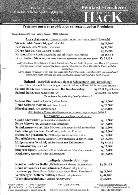 In den vorangehenden Jahren haben wir viele Goldmedaillen und Preise der DLG für unsere Ahle Worscht, diverse Schinken und andere Produkte bekommen !